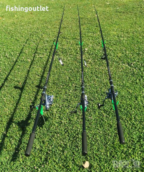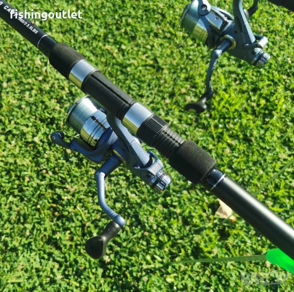 Три шарански въдици + три макари с байтрънер и влакна . НОВИ !!!