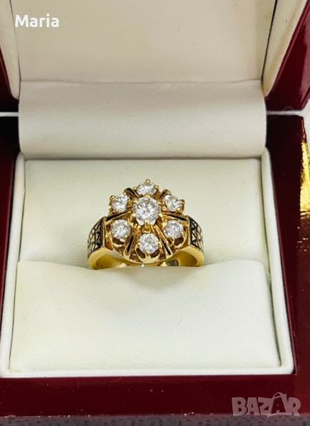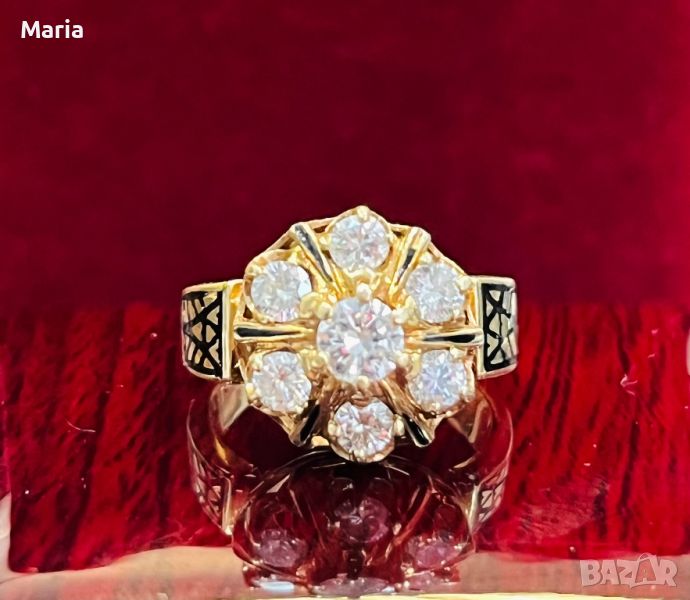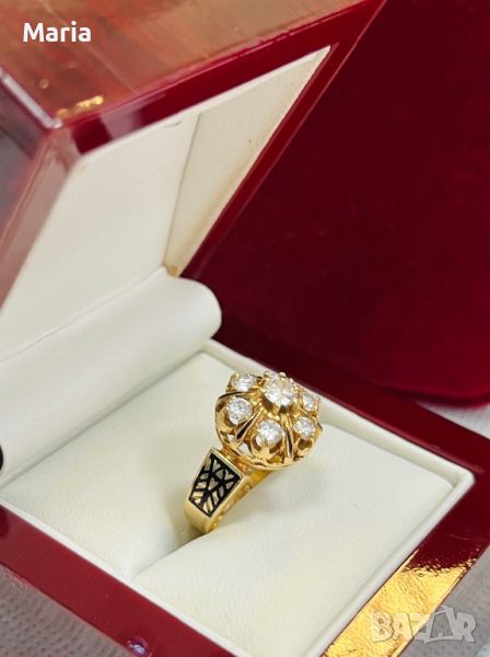 Дамски златен пръстен с емайл и брилянти → Обява 46772505