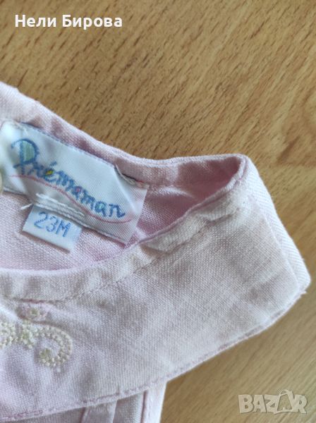 Детска елегантна рокличка Premaman, размер 23 м. Цвят – пастелно розово. Материя: 100% лен. Нова, само е изпрана.