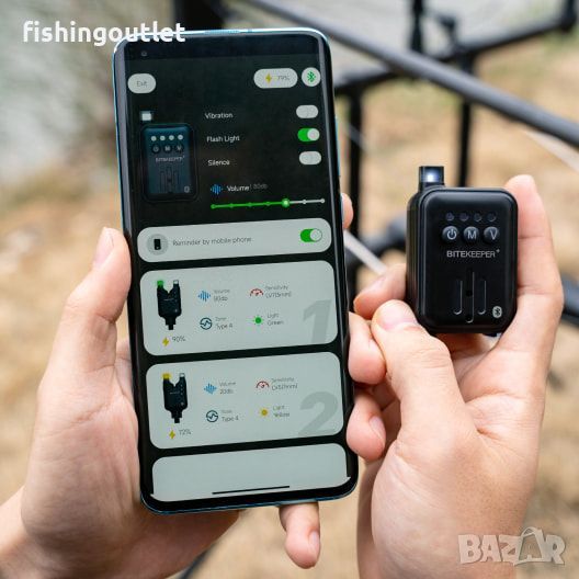 Комплект аларми BITEKEEPER , което чрез безплатно мобилно приложение осъществява връзка с всичките аларми и станцията . Потребителите могат лесно да контролират силата на звука, чувствителността и тона на алармите през приложението на своя телефон , както и да получават данни на записаните кълванета , с дата и час на всяко едно от устройствата.