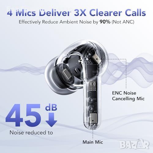 4 HD микрофона с ENC шумопотискане, намалява шум до 45 децибела