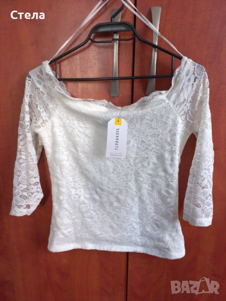 TERRANOVA дамски дантелен топ РАЗЛИНИ ЦВЕТОВЕ, / блуза с голи рамене, нов, с етикет