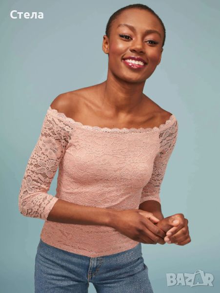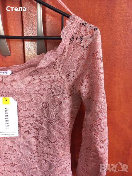 TERRANOVA дамски розов дантелен топ / блуза с голи рамене, нов, с етикет