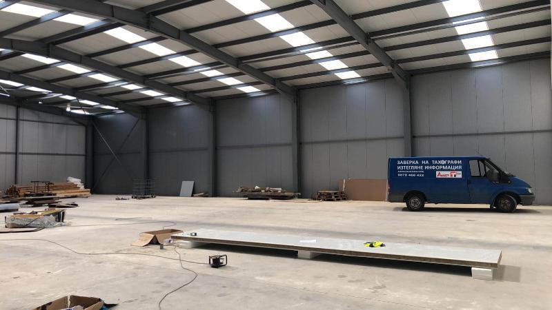 . Директно от собственик ново Хале -540кв. м. с височина 6. 50метра, Настилка -шлайфан бетон, стени PU сандвич панели, горно естествено осветление 3 броя врати по 4. 50 м. височина. Налични са всички комуникации и асфалтиран плац за маневриране на ТИР-ове, както и ТИР паркинг. Парцелът е изцяло ограден с масивна ограда, денонощна охрана, СОТ, трифазен ток и вода санитарни възли. горно естествено осветление, инсталирано видеонаблюдение, Предимства: Комуникативно местоположение, подходящ за различна дейност, Трафопост, кантар до 60т, мотокар на разположение, стилажи за европалети. Намираме се на 1км от изхода на гр Пазарджик посока Велинград, което представлява отлична локация. Наемна цена 6лв на кв. м. Ние сме с над 10 годишен опит в областта на промишлените имоти. Тел 0888946685- Найденов