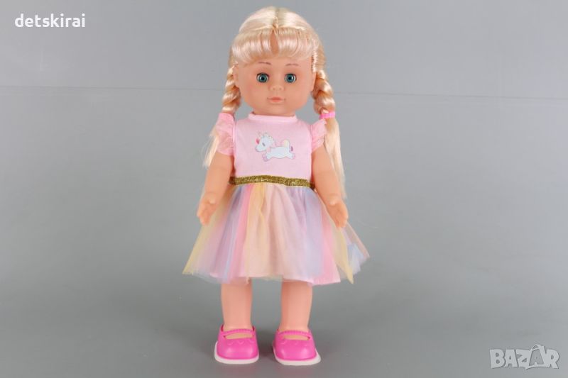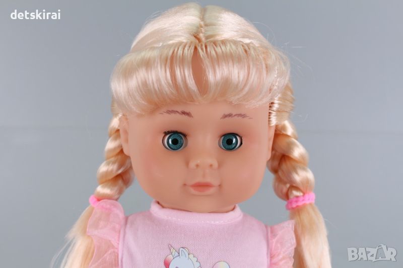 Куклата разполага и със бутон на гърдите. При включването му, тя върви и пее.