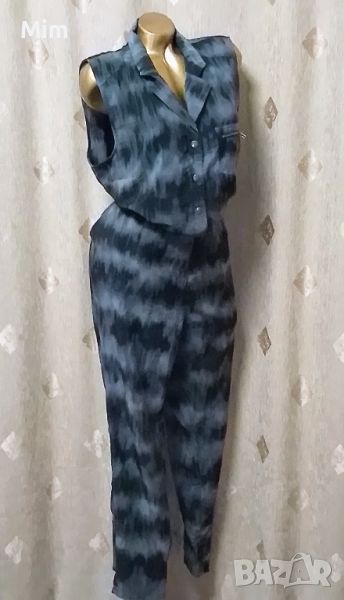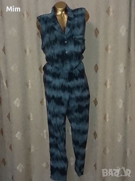 Гащеризон без ръкави, закопчаването е отпред с копчета тик так,в талията с връв за регулиране на размера по тялото. Гръдна 58 см едностранно,талия 47 до 60 см едностранно ,ханш 67 см едностранно, дължина 166 см , широчина на крачола 15 см.странично с два джоба Няма следи от употреба.