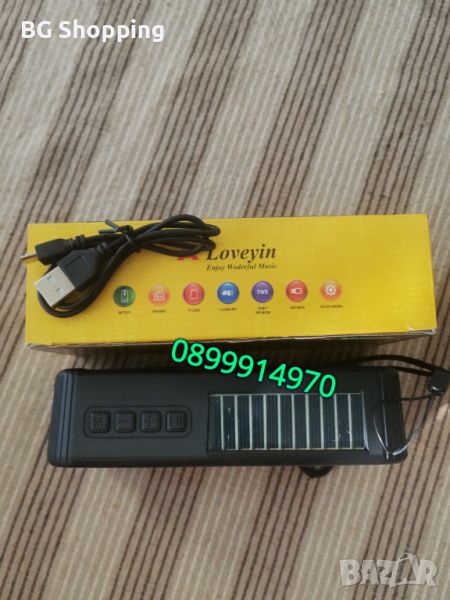Възпроизвежда MP3 файлове от USB и TF слот. Зареждане на вградената акумулаторна батерия 3.7V 18650 от соларния панел или с кабел micro USB за зареждане от USB порт 5VDC. Размери 156x74x45mm. Цвят: ЧеренТегло (кг.) 0.60Цвят на продукта: Черен;Материал: ABS;Бруто тегло: 288g/0.63lbs;Размер на единична опаковка: 16.5×9×5.1cm/6.49×3.54x2.00inch;Размер на продукта: 15,8×7,4×4,4 см/6,22×2,91×1,73 инча;Bluetooth: 5.3;Разстояние на връзката: 10 метра;Съвместимост на карти: TF;Работно време: от 2 до 5 часа;Капацитет на батерията: 500mAh;Захранване за слънчево зареждане: 0.2Ah;Оборудван с Bluetooth, фенерче и соларен панел;Широкоприложение: Подходящ за настолен компютър, фитнес, пътуване и употреба на открито;Слънчеви панели от поликристален силиций: Автоматично слънчево зареждане, дълъг експлоатационен живот на надграждането на поликристален силиций и висока скорост на фотоелектрическо преобразуване;USB зареждане: Мулти съвместими с електронни устройства като захранване и зареждане в автомобила;Функции: Може да бъде в USB флаш устройства, радиостанции и карти с памет.