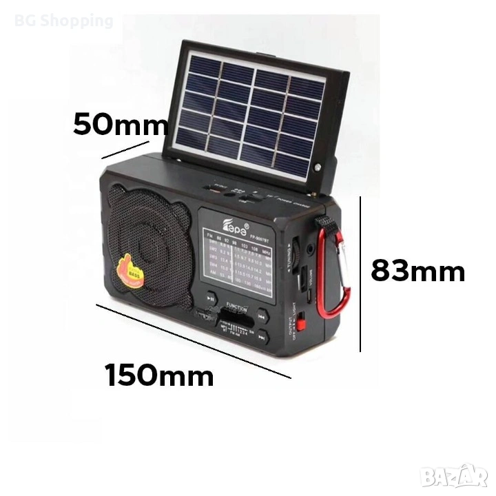 Соларно Радио- Bluetooth,USB,SD+LED Фенер