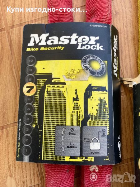 Стоманена верига с катинар за велосипед мотор или друго - MasterLock, снимка 1 - Друга електроника - 46775621 Стоманена верига с катинар за велосипед мотор или друго - MasterLock, снимка 2 - Друга електроника - 46775621 Стоманена верига с катинар за велосипед мотор или друго - MasterLock, снимка 3 - Друга електроника - 46775621 1/3