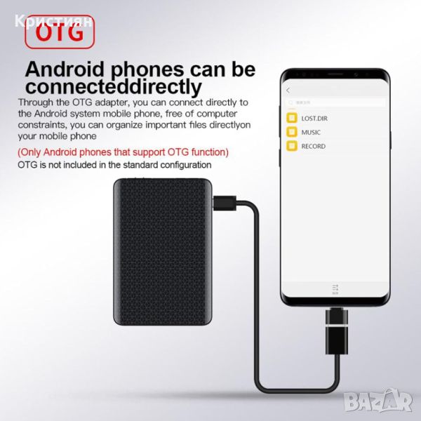 Моделът разполага със слушалки в комплекта. Може да да прослушате записите, да изтриете нежеланите файлове и много други.