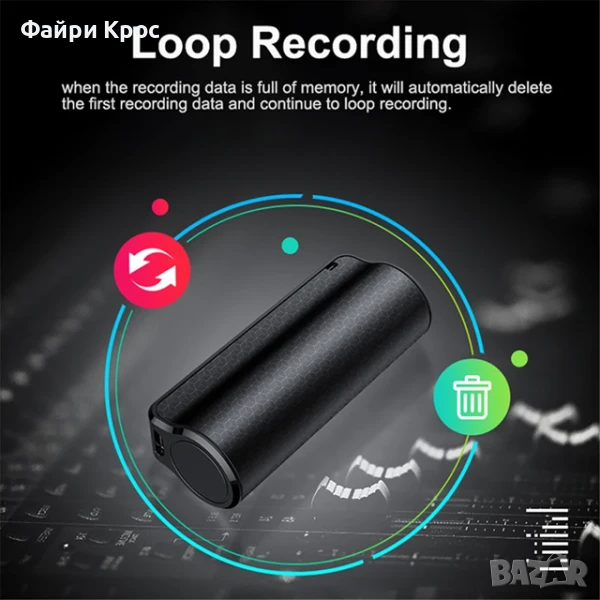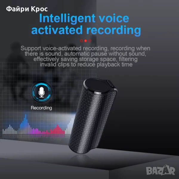 Продуктът не изисква инсталиране на допълнителни драйвери, за да активирате функцията за прихващане, просто преместете плъзгача отстрани на устройството. Рекордерът има функция за гласово активиране, което означава, че няма да записва тишина. Следователно можете да оставите устройството активирано по-рано в стаята.