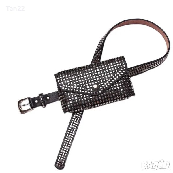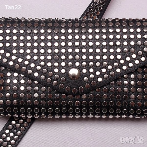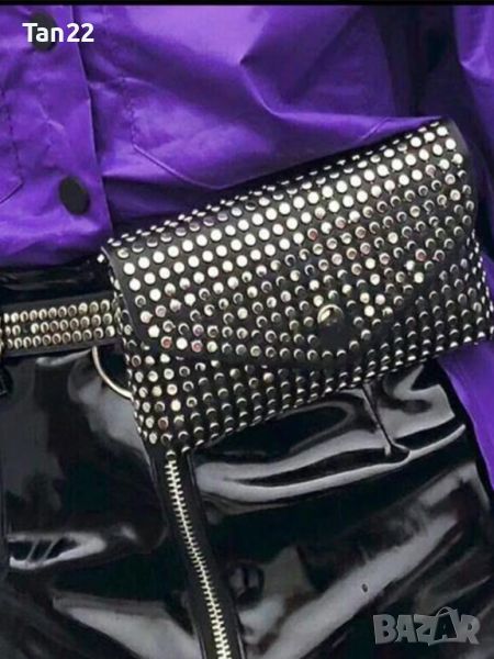 Луксозна чанта за кръста в черно с капси и колан който се сваля-също с капси