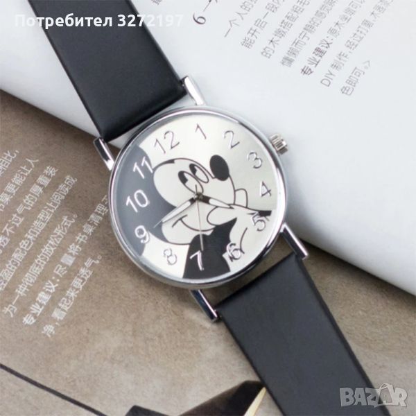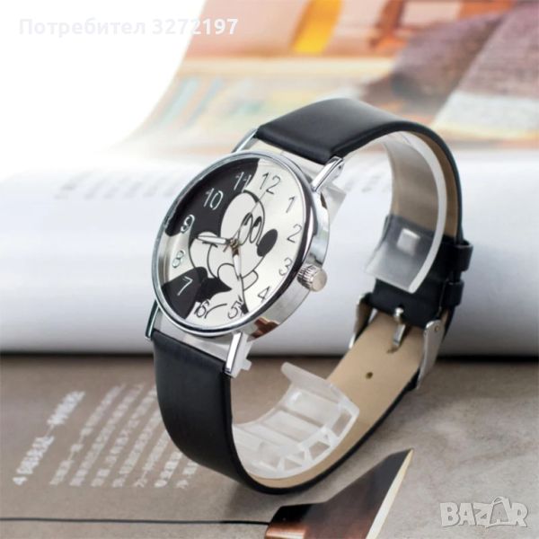 2024 Нов моден,красив кварцов часовник Мики Маус,кожена каишка