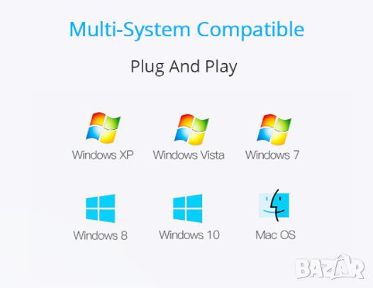 Без инсталация на драйвери (Plug & Play) за Windows 2000 / XP / 7 / 8 / 10 / Server 2003 / Vista, Linux, Mac OS