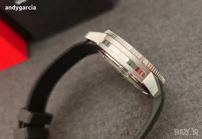 Материал на корпуса: Благородна стомана в комбинация с черно покритие, керамичен безел. Прозрачен заден капак.