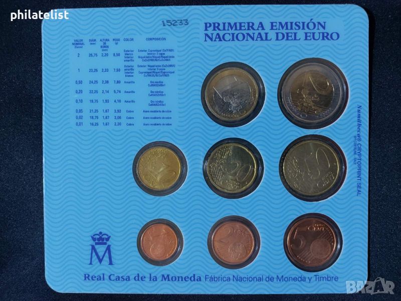 2001 – Комплектен банков евро сет от 1 цент до 2 евро – 8 монети BU – 60 лева