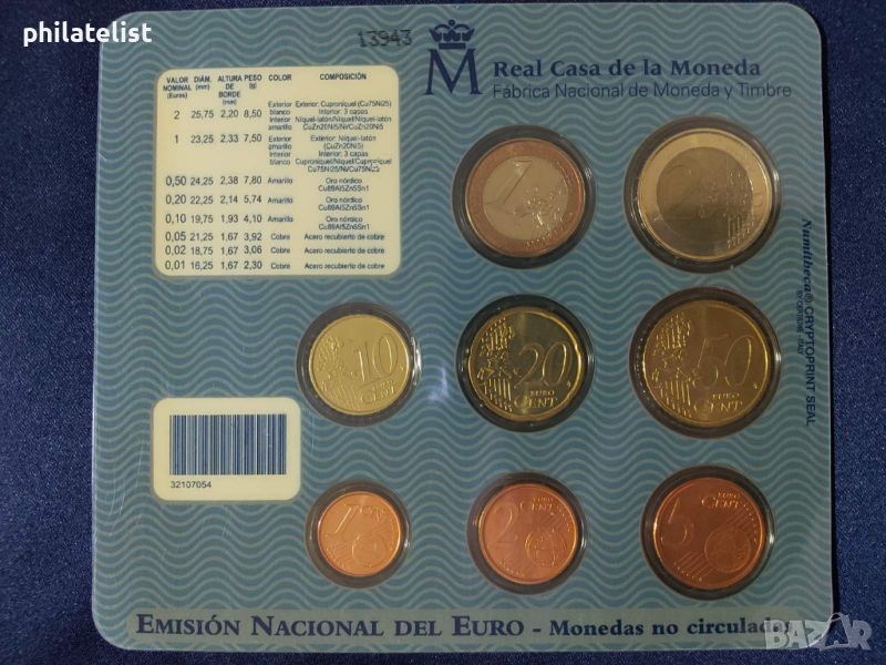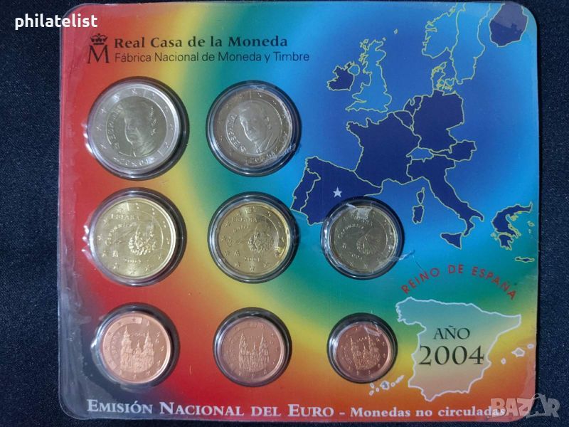 2004 – Комплектен банков евро сет от 1 цент до 2 евро – 8 монети BU – 59 лева