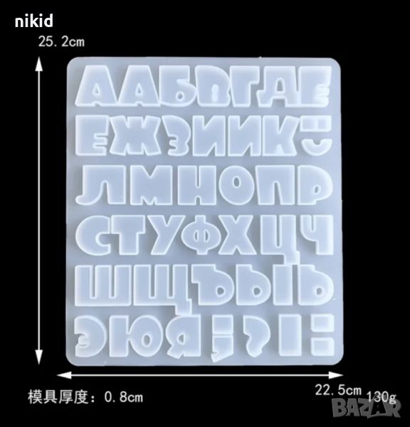 Големи Главни печатни широки букви азбука кирилица български силиконов молд форма фондан гипс смола → Обява 46780534