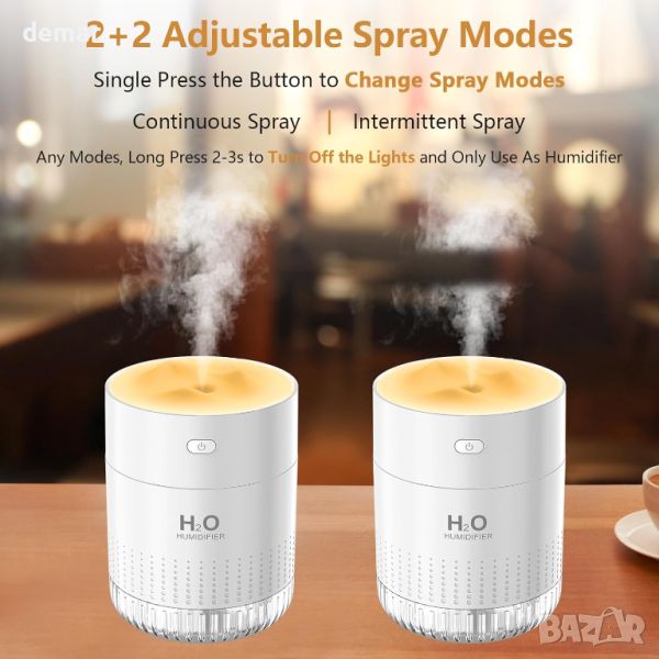 Преносимият овлажнител предлага регулируеми режими на пръскане и светлина за персонализирано изживяване. Натиснете продължително бутона за осветление, за да включите или изключите топлата светлина и щракнете, за да комбинирате спрей със светлинен режим или изберете периодични/постоянни режими на мъгла със или без светлина. С резервоар за вода от 350 ml, той автоматично работи 4 часа в режим на непрекъснато пръскане или 8 часа в режим на прекъсване. Неговата работа с нисък шум (<30dB) осигурява спокоен сън, като същевременно овлажнява вашето пространство и предотвратява сух въздух, микроби от грип/настинка и суха кожа. Използвайки усъвършенствана микропореста технология за мъгла, тя намалява намокрянето с 92%, което я прави лесна за зареждане и поддръжка. Идеален за средно големи спални и всекидневни, този настолен овлажнител облекчава сухия въздух и осигурява дълготрайна влага, което го прави идеален подарък за домашна употреба или за приятели.