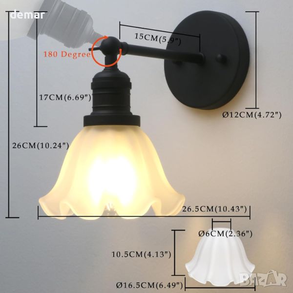 абажур, създаден с помощта на традиционни ръчни техники за духане на стъкло, той демонстрира артистичен стил с вътрешни мехурчета, които увеличават максимално осветлението. Съвместима с множество типове крушки, включително крушки с нажежаема жичка E27, LED, CFL и халогенни крушки (крушката не е включена), тази универсална лампа за стенен монтаж е идеална за тавански помещения, веранди, селски къщи, ресторанти, кафенета, дневни, кухни, спални, и проучвания.