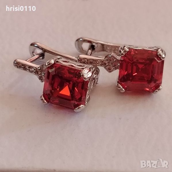 Нови нежни сребърни обеци с английско закопчавсне и червен цирконий, който наподобява рубин.