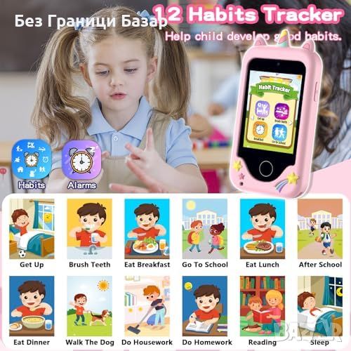 Учене на букви и звуци на животни, иконични сгради и управление на навици с аларми.