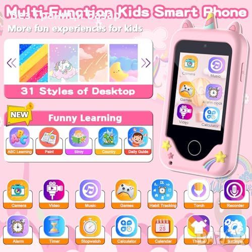 Детски телефон с тъчскрийн и множество функции за забавление и учене.