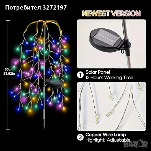 LED соларна лампа,многоцветна с 100 висящи светлини,водоустойчива.