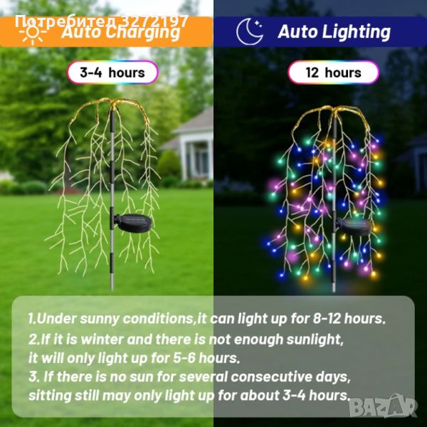 LED соларна лампа,многоцветна с 100 висящи светлини,Водоустойчива