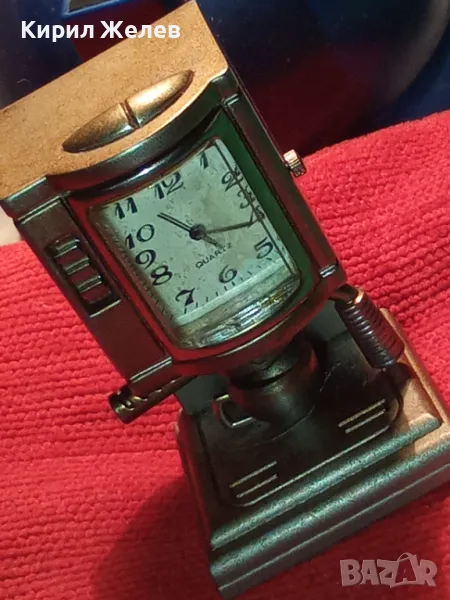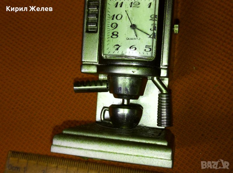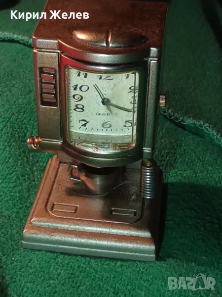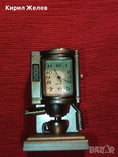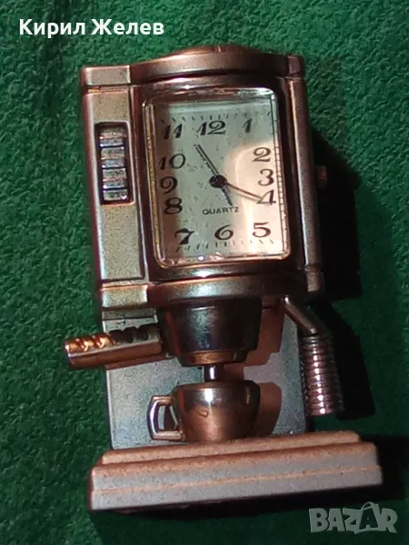 ИНТЕРЕСЕН ФИГУРАЛЕН СРЕБРИСТ КВАРЦОВ НАСТОЛЕН ДЕКОРАТИВЕН ЧАСОВНИК КАФЕ-МАШИНА 47091 → Обява 46783744