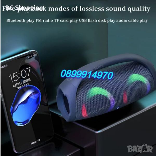 Повишавайте нивото на слушане с нашите динамични светлинни ефекти. Високоговорителят разполага с цветни LED светлини, които се синхронизират с ритъма на музиката ви, създавайки завладяваща атмосфера за партита, събирания или просто за релаксация у дома.Водоустойчив и издръжлив дизайн: Вземете музиката си, където и да отидете, без да се притеснявате. Нашият преносим високоговорител може да се похвали със здрава и водоустойчива конструкция, което го прави идеален за приключения на открито, партита край басейна или всяка друга среда, в която издръжливостта е от значение.Безжична връзка и дълъг живот на батерията: Насладете се на безпроблемна безжична връзка с технологията Bluetooth 5.0, която осигурява стабилна връзка и разширен обхват. С дълготрайната батерия можете да се наслаждавате на часове непрекъснато възпроизвеждане на музика, без да се налага често да я зареждате.Универсална функционалност: Нашата преносима колонка предлага множество опции за възпроизвеждане за ваше удобство. Свържете се чрез Bluetooth, поставете USB флаш устройство или се настройте на FM радиостанции, за да получите достъп до голямо разнообразие от аудио съдържание. Колонката разполага и с вграден микрофон за провеждане на разговори със свободни ръце.Boombox 2, Bluetooth, Батерия 10000 mah, Черен BOOMBOX 2 има много предимства, някои сред които - колонката свири по силно, по-хубаво, с по-хубав бас.BOOMBOX 2 е изключителен спийкър осигуряващ силен и качествен стерео звук и вградена батерия за зареждане на вашите устройства.С BOOMBOX 2 може да се забавлявате навсякъде, тъй като колонката притежава Splashproof технология, която дава гаранция, че колонката няма да се повреди при наплискване с вода, има издръжливата материя и здрав корпус.Иновативен и динамичен дизайн.Патентована технология за чист и кристален звук без ехо и външни смущения.С помощта на вграденият микрофон можете да проведете телефонни разговори с кристално ясен звук.Може да се използва и като Powerbank батерия - наличен USB порт за зареждане на вашите таблет или смартфон.Колонката разполага с AUX, USB, micro USB, SD вход. Към USB входа можете директно да свържете флашка и да слушате вашата любима музика.Безжично свързване на две или повече
