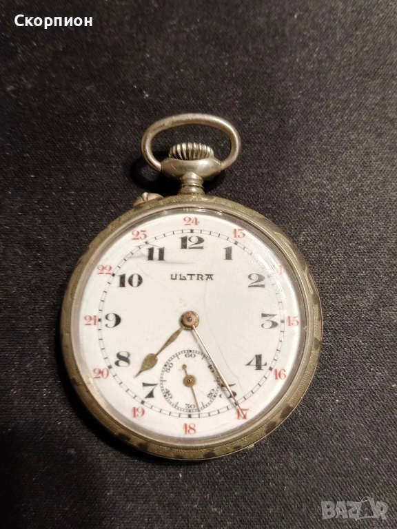 Швейцарски джобен часовник с посребрени капаци ULTRA 1905г. → Обява 46785314