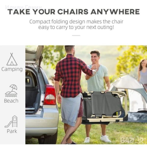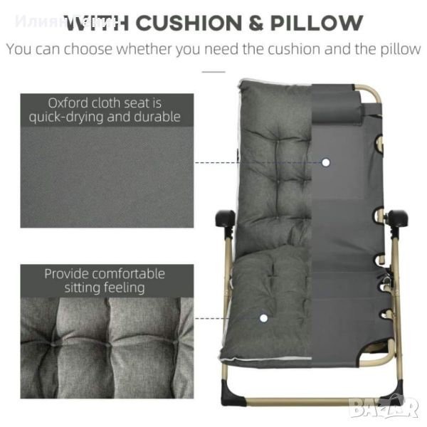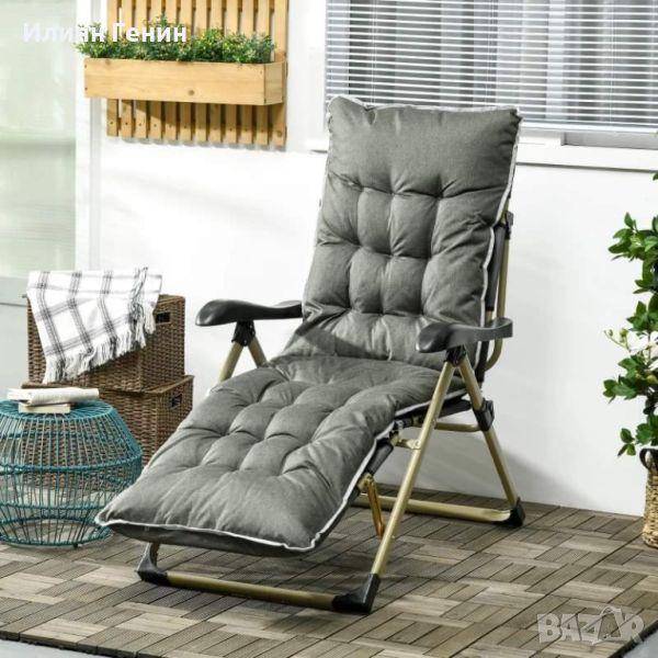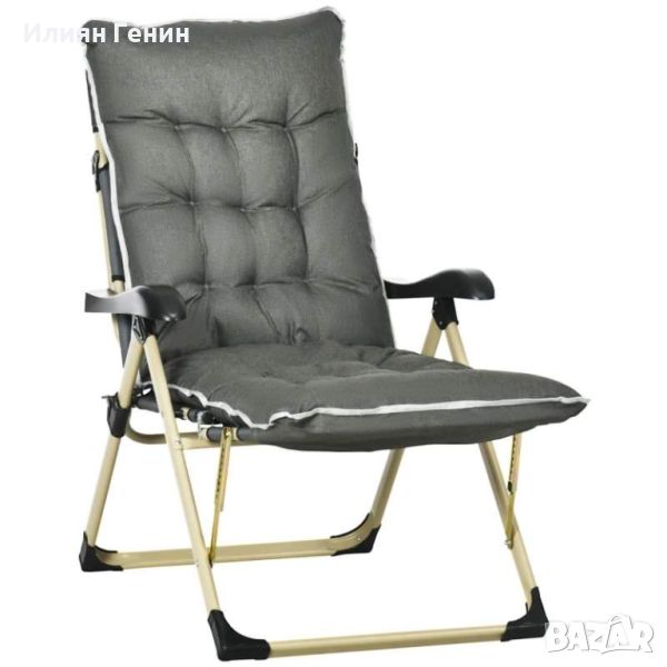 Outsunny Външен сгъваем накланящ се шезлонг с възглавница, регулируема облегалка и поставка за крака - 190.00лв.