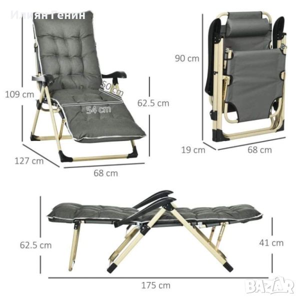 Сгъваем: Накланящият се шезлонг е лесен за пренасяне и съхранение.