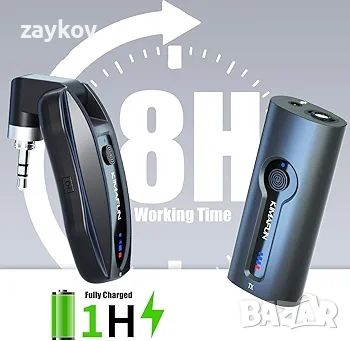 8-часово работно време: Предавателят и приемникът могат да бъдат напълно заредени за 1 час и могат да се използват до 8 часа. Индикаторът за батерията ясно показва напредъка на зареждането и текущия оставащ заряд на батерията.