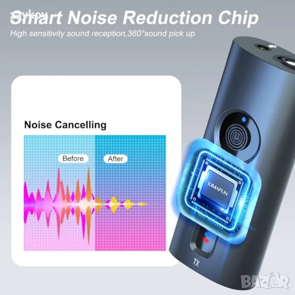 Безжичен микрофон KIMAFUN Lavalier, акумулаторен предавател и приемник