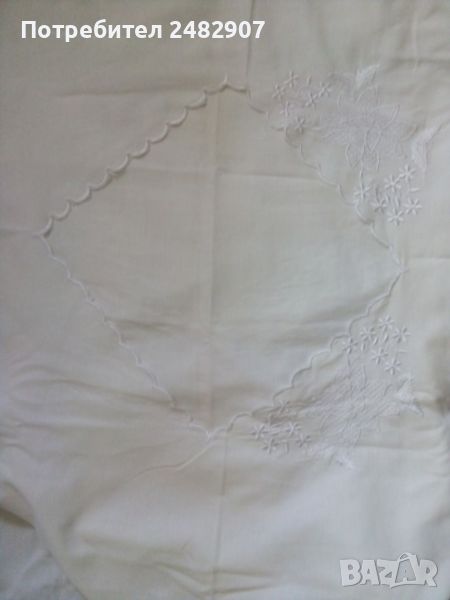 Горен чаршаф/плик с бродерия. Съдържа 100 % полиестер. Размери -160/210 см. Много запазен, много малко използван, с нормални следи от употреба.