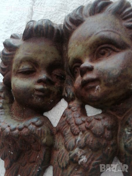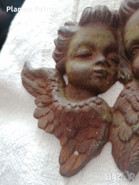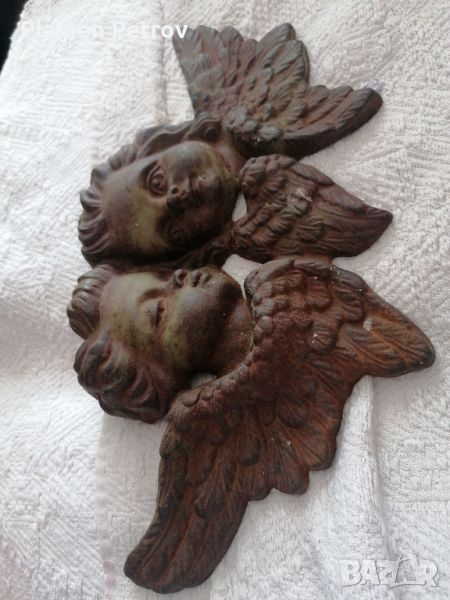 Стара чугунена отливка на два ангела с размери от дължина 35 см, височина 22 см и дебилина 5 см отзад има закачка за стена