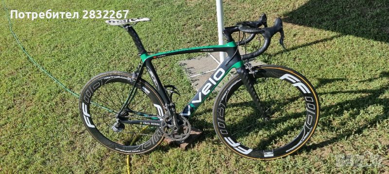 велосипед на страхотната българска марка "VIVELO" изцяло карбонов. Велосипеда е личния тренировъчен на състезателя Javier Aramendia от испанския отбор "Caja-Rural" по времето когато партнират с българския производител (2012). Отлично визуално състояние, с дребни следи от употреба. Без никакви удари и каквито и да било технически дефекти по рамката. Изцяло обслужен и минал пълна профилактика. Карбонови капли: https://ffwdusa.com/f6r-fcc-ride-review-peloton-magazine/ на цена $2265.00 състоянието на които е граничещо с ново! Пълен изцяло карбонов campagnolo record 11 speed sceleton монтаж. Велосипеда е с чисто нови гуми Continental Ultra sport.