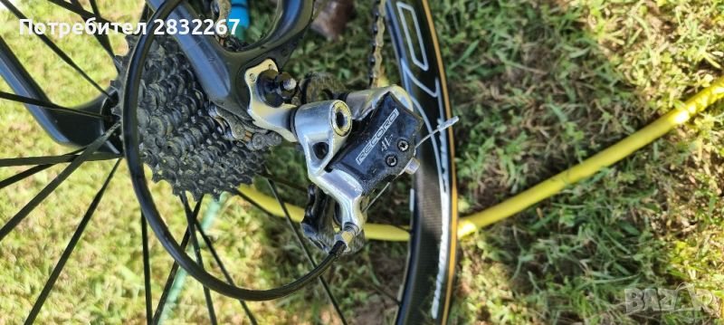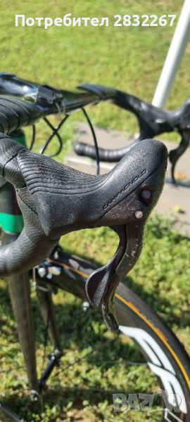 !!!Единствена забележка на велосипеда: отчупено малко парченце карбон от предния дерайльор. Дефект който не оказва влияние на работата и смяната на скорости, който би могъл да бъде отстранен много лесно.
