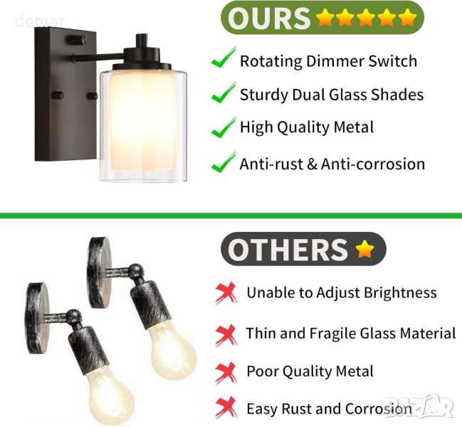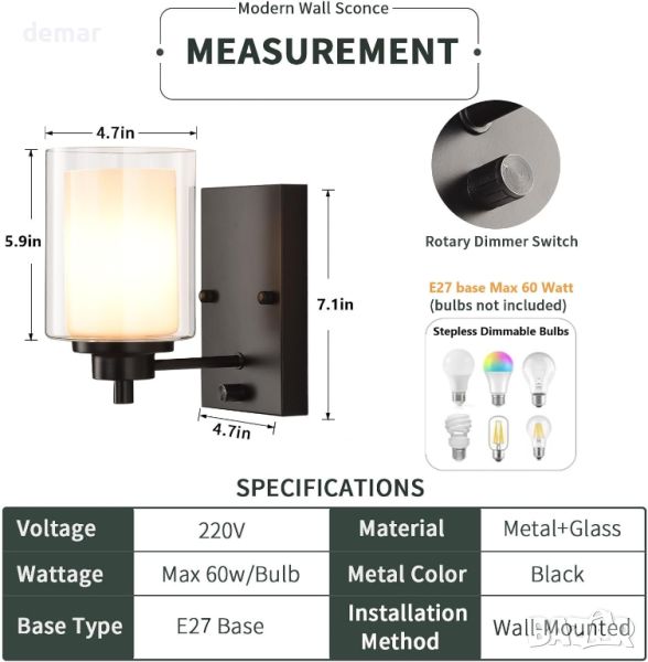 Индустриалните стенни осветителни тела разполагат с въртящ се превключвател за включване/изключване на димера за регулируема яркост (0-100%) и лесен монтаж нагоре/надолу с включен монтажен хардуер. Матовото черно покритие е издръжливо, устойчиво на ръжда и подходящо за влажни среди като бани и перални. С висококачествени двойни стъклени абажури, те осигуряват стилно, незаслепяващо осветление. Съвместими с базови крушки E27 до 60 W (не са включени) и напълно димируеми с подходящи крушки, тези светлини са подходящи за различни пространства, включително бани, всекидневни, кухни, коридори и спални, предлагайки три стилови опции за разнообразен декор.