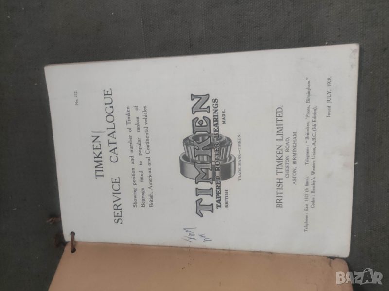 Продавам каталог лагери Timken tapered roller bearings Service Catalogue 1928 → Обява 46792231