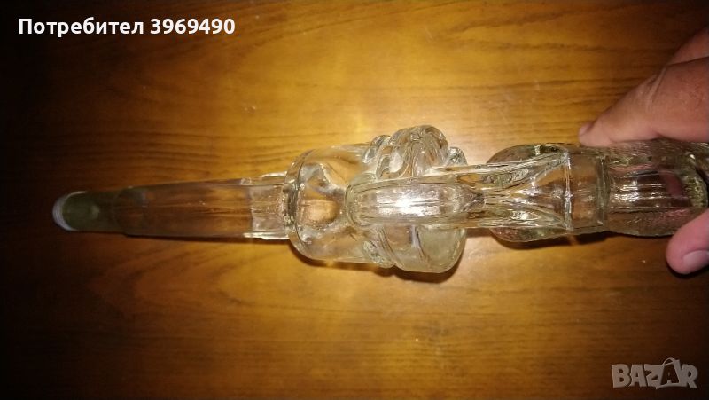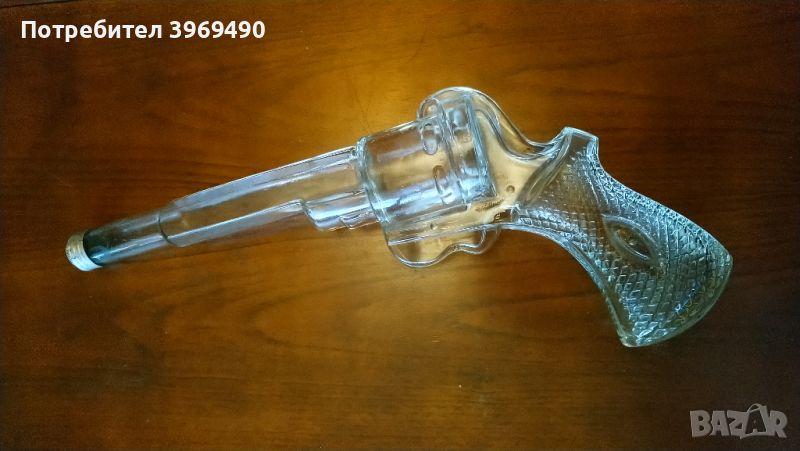 Стъклена бутилка във форма на револвер. → Обява 46792676