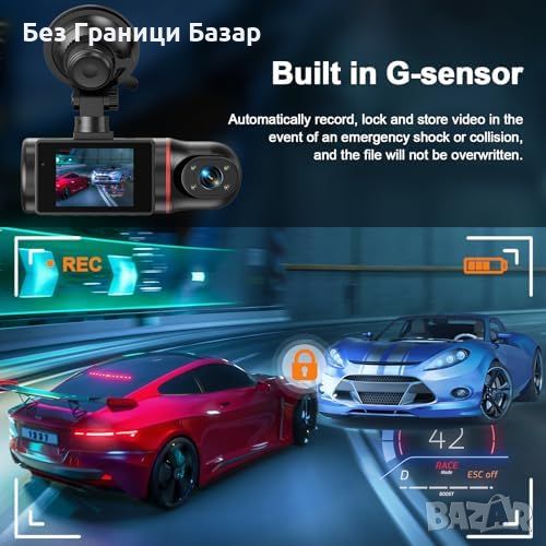 Заключване при аварийни ситуации: G-сензор, който автоматично заключва текущото видео при удар или сътресение.