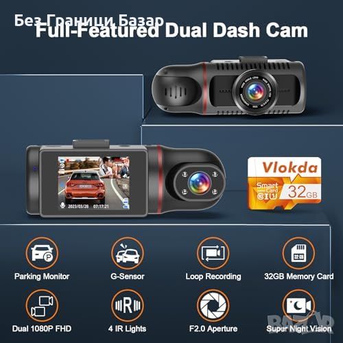 Нова Двуканална видеокамера за кола 1080P с нощно виждане и G-сензор