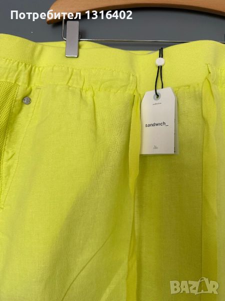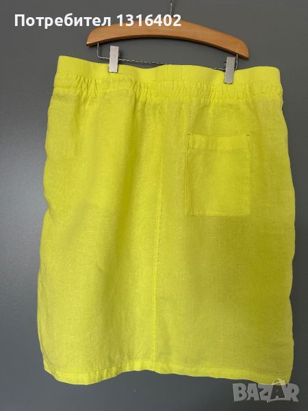 Лятна пола от лен, в искрящо жълт цвят, нова с етикет “Sandwich”, размер XXL,eur44, има ластик на талията, талия 47см, ханш 60см, дължина 62см.