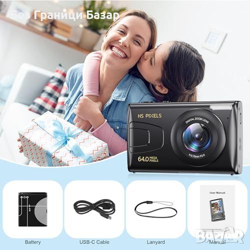 Нов 64MP Детски фотоапарат 4K, Компактна Влог Камера с 32G Карта