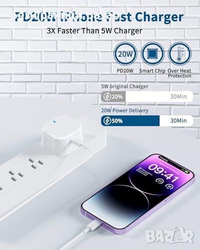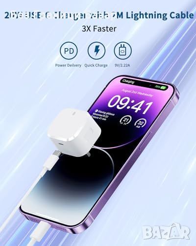 Комплект: Включва 20W USB-C адаптер и 2M USB-C към Lightning кабел.