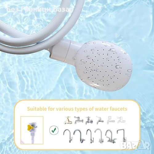 Лесен монтаж: Просто закрепете скобата към крановете и свържете маркуча към душа. Удобен захват на душа за комфортна употреба.