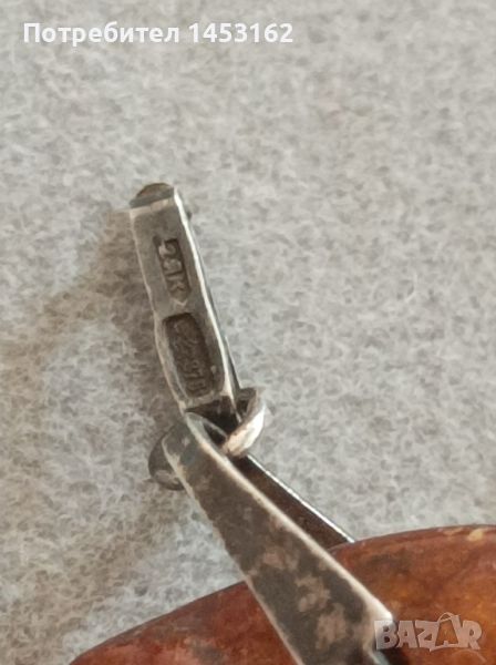Рядка висулка с естествен кехлибар от СССР,държача е сребърен с печат звезда,сърп и чук проба 875 дължина 7 см.